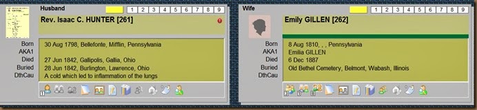 After reviewing this information, and for what reason, I don’t know, I clicked on his parents, Rev. Isaac C. Hunter & Emily Gillen. They are my 3rd great grandparents.